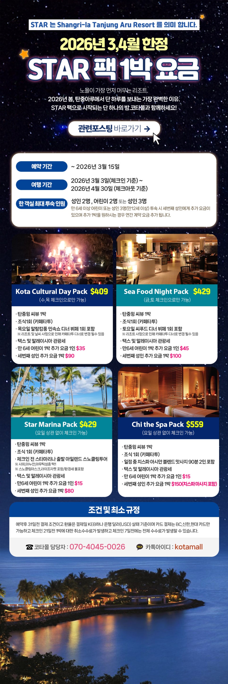 샹그릴라 탄중아루 리조트 STAR PACK (스타 팩) 1박 요금 페이지 정보 작성자 쪽지보내기 메일보내기 자기소개 아이디로 검색 전체게시물 쪽지보내기 메일보내기 자기소개 아이디로 검색 전체게시물 작성일26-01-13 19:17 조회325회 댓글0건 관련링크 https://blog.naver.com/kotajigi/224145324897 188회 연결 이전글 다음글 목록 답변 글쓰기 본문 https://blog.naver.com/kotajigi/224145324897 (관련 포스팅) 댓글목록 등록된 댓글이 없습니다. 이전글 다음글 목록 답변 글쓰기